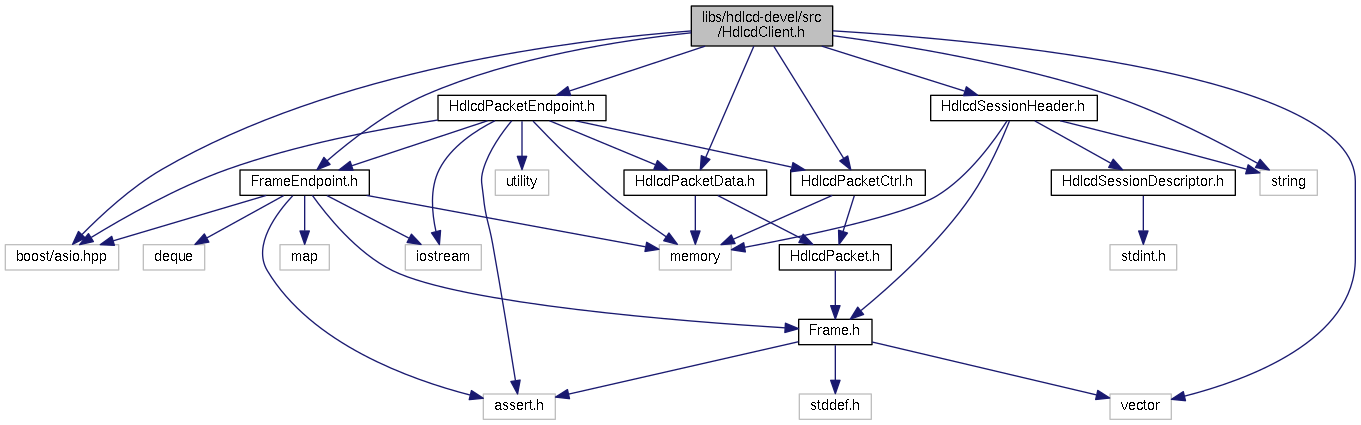 #include <boost/asio.hpp>#include <vector>#include <string>#include "HdlcdPacketEndpoint.h"#include "HdlcdSessionHeader.h"#include "HdlcdPacketData.h"#include "HdlcdPacketCtrl.h"#include "FrameEndpoint.h"